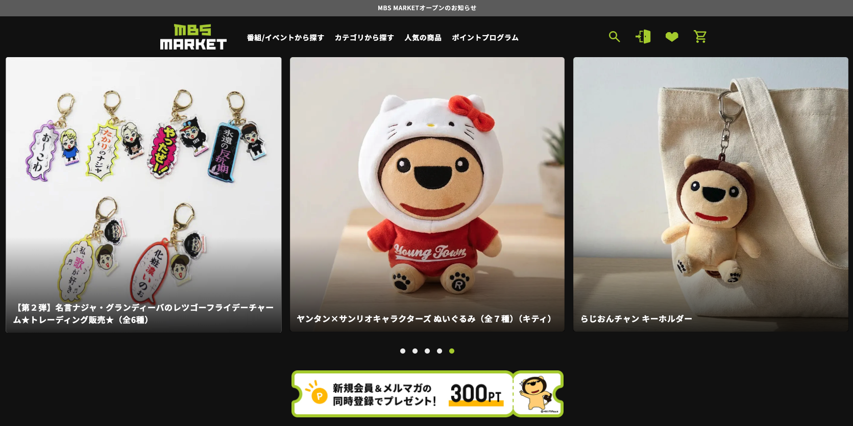 「MBS MARKET」は、MBSグループの番組やイベントから生まれるオリジナルグッズを中心に展開する公式ECサイトです。テレビ番組、ラジオ番組、デジタルコンテンツ、リアルイベントと連動し、ここでしか手に入らない公式グッズや限定アイテムを通じて、ファンの皆さまが“推し”を見つけ、応援するきっかけとなる場を提供します。
