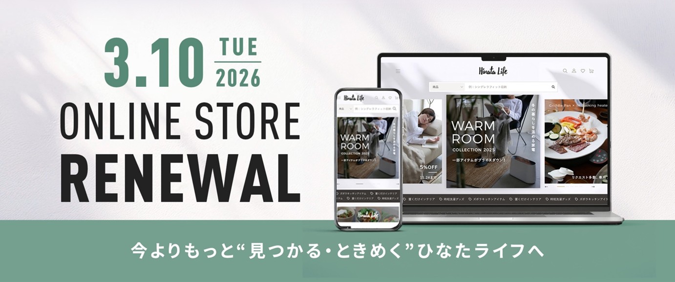 当社子会社である株式会社ひなたライフ(所在地:千葉県千葉市、代表取締役社長:江戸 英雅、以下「ひなたライフ」)は、ひなたライフが運営するライフスタイルECサイト『ひなたライフ』を2026年3月10日(火)に全面リニューアルいたします。